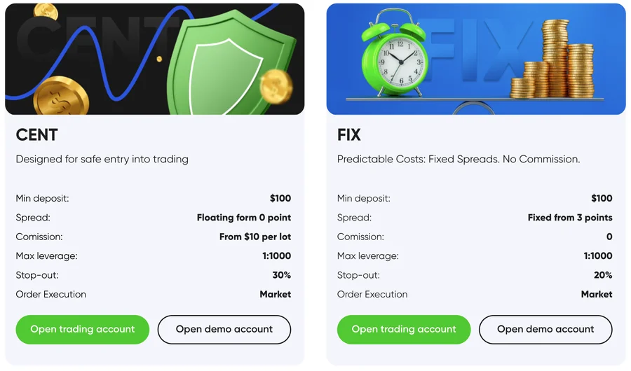 - ZERO — спреды от 0.0, без комиссий, подходит активным трейдерам.